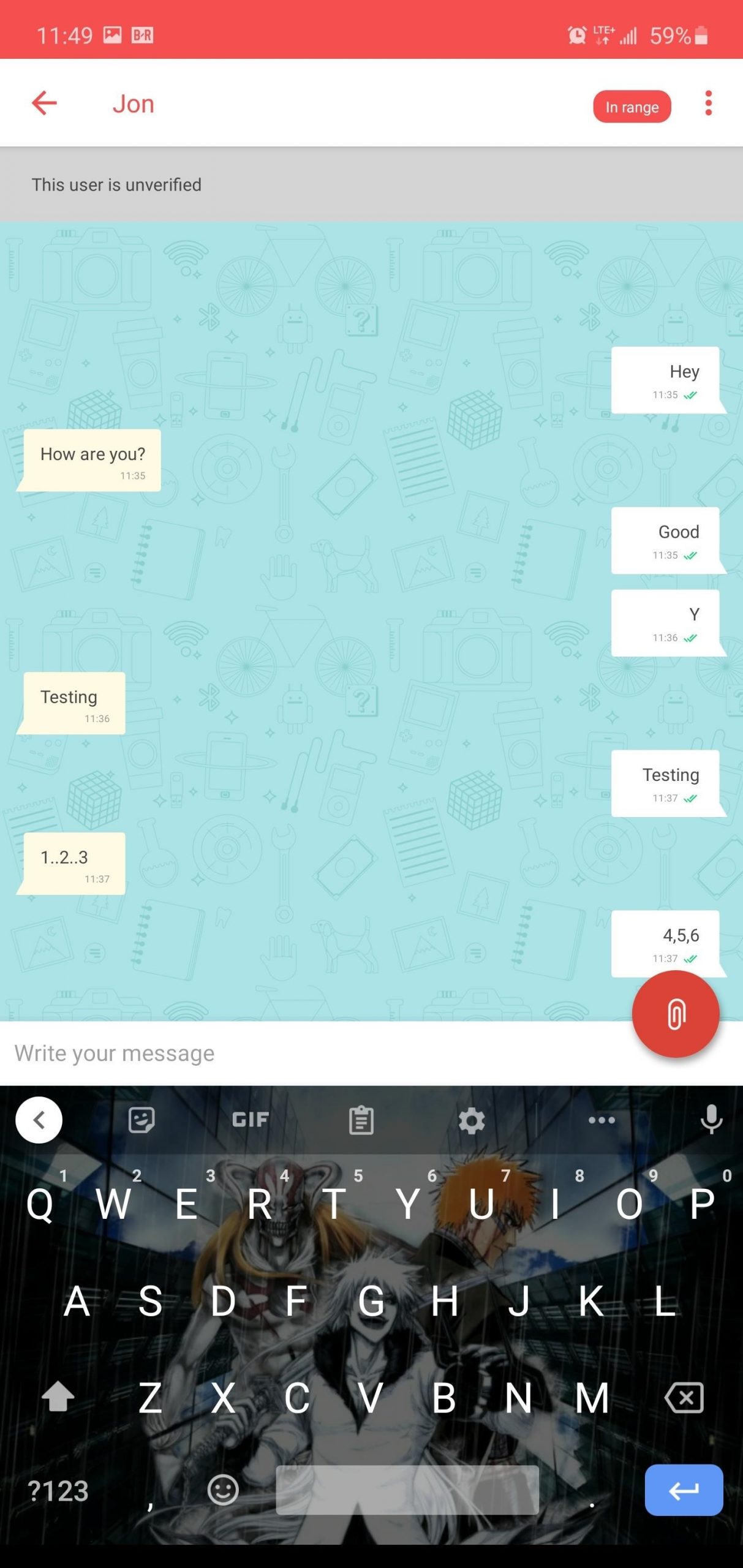 عندما تظهر رساله تُخبرك بأنك “داخل النطاق” فستكون قادراً على إرسال رسالتك بدون إتصال بالإنترنت أما إن لم تكن ظاهره ، فسوف يستخدم التطبيق الإنترنت لتوصيل رسالتك.