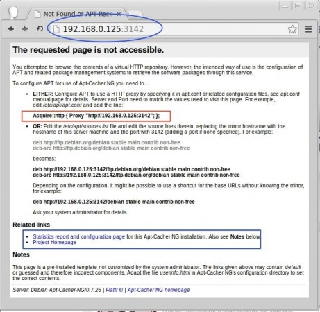 ستحصل على عنوان URL التالي من صفحة تقرير الوصول إلى apt-cacher-ng على http://192.168.0.125:3142/.