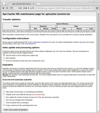 الوصول إلى صفحة تقرير apt-cacher-ng في واجهة الويب باستخدام عنوان URL أدناه.