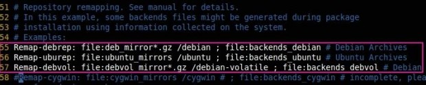 Remap-uburep: file:ubuntu_mirrors /ubuntu ; file:backends_ubuntu # Ubuntu Archives