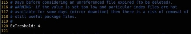 يمكنك الآن فتح وتحرير ملف تهيئة cache-ng الموجود أسفل دليل / etc / apt-cacher-ng.