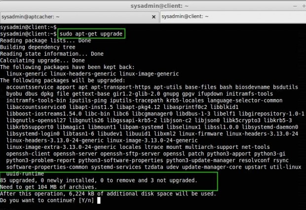 لذا ، سيتم الآن تخزين الحزم مؤقتًا في apt-cacher. إذا كنت أقوم بتحديث جهاز العميل هذا ، فلن يستغرق الكثير من الوقت للحصول على حزم من الإنترنت.