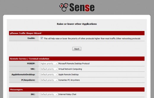 في هذا القسم من المعالج ، يمكنك تحديد ما إذا كنت تريد إلغاء تحديد أولوية باندوث شبكات peer-to-peer. سيحتاج الجميع تقريبًا إلى تمكين هذا الإعداد نظرًا لأن ترافيك P2P غالبًا ما تكون أكبر مستخدم لباندوث الإنترنت على الشبكة. قم بتمكين مربعات الاختيار الموجودة بجوار كل تطبيق تريد أن يبحث عنه المشغل المروري على الشبكة.