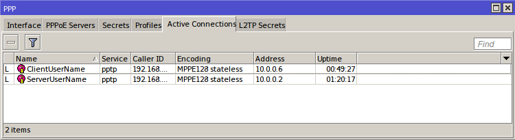 يتصل جهاز كمبيوتر العميل أيضًا بالشبكة VPN الخاصة عبر PPTP ، ويكسب الوصول إلى موارد الخادم.