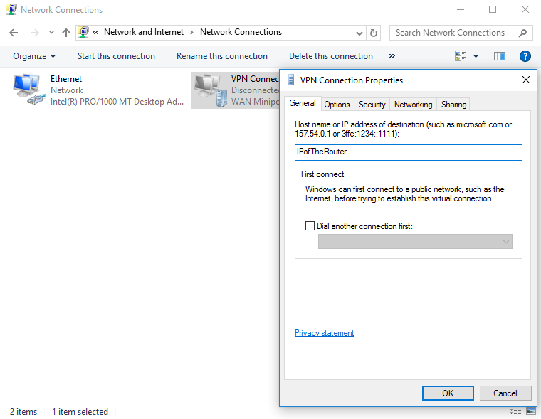 الآن لنقم بإعداد PPTP VPN على Windows 10 Client PC: