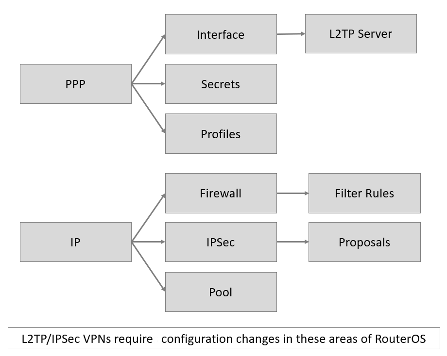 فيما يلي مناطق اعداد RouterOS التي تتعلق بـ L2TP عبر IPSec :