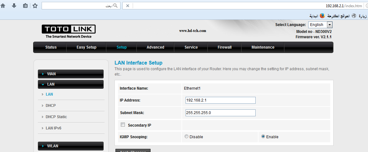 الان نقوم بالدخول على المودمات كل مودم على حدة ونقوم بتغيير ip المودم بحسب التسلسل
