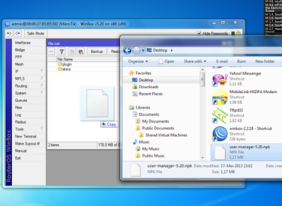 والان بعد تنزيل الحزمة نقوم بفتح ال(winbox) ونذهب الى تبويب الملفات (files) ثم نقوم بسحب وافلات الحزمة الى داخل نافذة ال(winbox) كما في الصورة التالية: