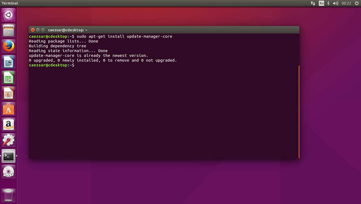 4. قبل بدء عملية الترقية إلى أحدث إصدار من Ubuntu ، تأكد من تثبيت حزمة التحديث الإداري الأساسية ، وهي الأداة الموصى بها من قِبل Canonical لترقية الإصدار ، على النظام عن طريق إصدار الأمر أدناه.