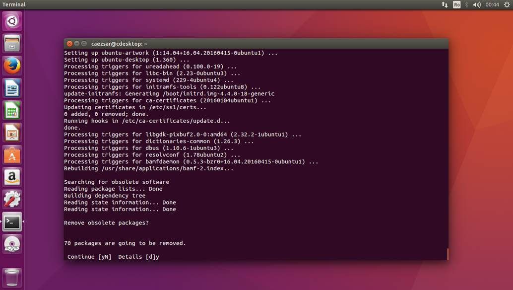 ابدأ في إزالة البرامج غير المرغوب فيها من النظام الخاص بك من أجل تحرير مساحة القرص عن طريق إصدار الأوامر التالية:
