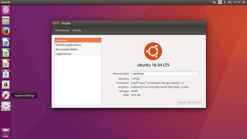 10. إذا كنت تفضل التحقق من إصدار توزيعك من واجهة المستخدم الرسومية ، فافتح System Setting وانتقل إلى علامة التبويب Details .