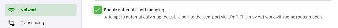 ملاحظة: إذا قمت للتو بتمكين UPnP على جهاز التوجيه الخاص بك ، فيرجى إعادة تشغيل Emby Server.