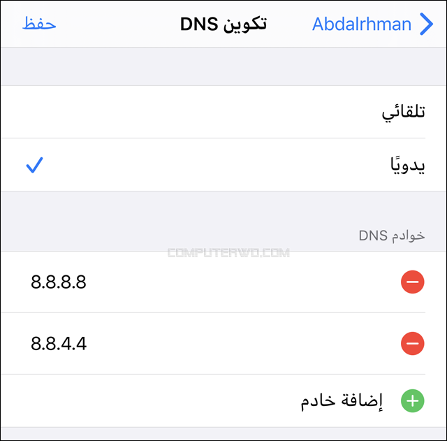 يجب عليك ان تضع في اعتبارك أن لكل شبكة واي فاي تتصل بها إعداد خادم DNS خاص بها.