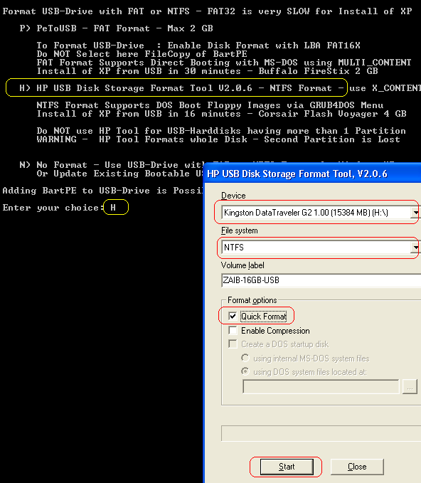 يعمل خيار “تنسيق HP” بشكل جيد لأي سعة ، ويمكنك استخدام FAT32 / NTFS بدون مشاكل. هذا يمكن أن يكون مفيدا لأن المزيد من الأنظمة يمكن أن تقرأ FAT32 من NTFS.