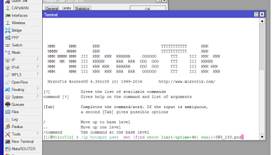 /ip hotspot user set [find where limit-uptime=3h] email=3@0_100.ptd