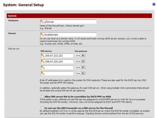 في معظم الحالات ، هذا يعني أن DNS server يجب أن يستخدم الـ gateway الافتراضية نفس العنوان (بافتراض أن pfSense هو local router).
