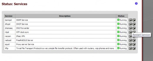 يمكن إعادة تشغيل الخدمة في القائمة Status \ Services من واجهة الويب.