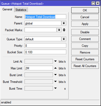 إنشاء Traffic Quue Tree Queue for global ، أظهرنا استخدام Max Limit 2 Mb.