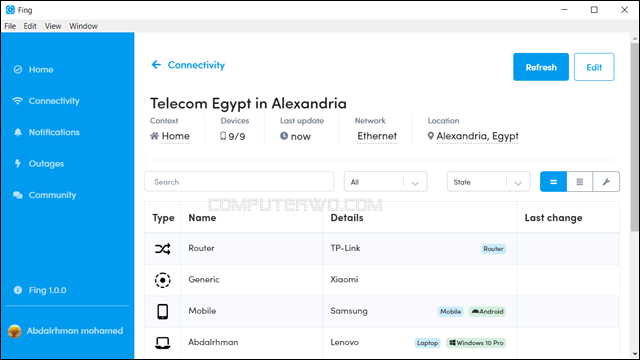 برنامج Fing عبارّة عن وسيلة احترافية جدًا يمكنك من خلالها معرفة الأجهزة المتصلة بالراوتر أو شبكة الإنترنت الخاصة بك.