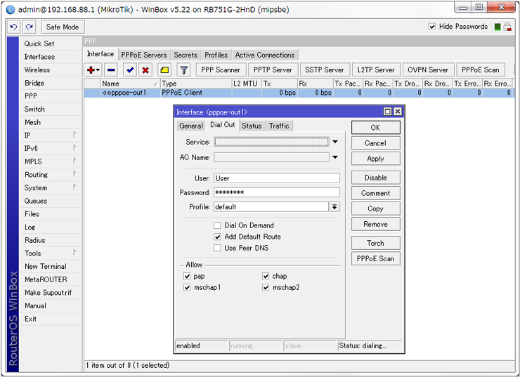 الموقع: [PPP] – [Interface] تكوين إعداد الموفر للاتصال بالإنترنت.