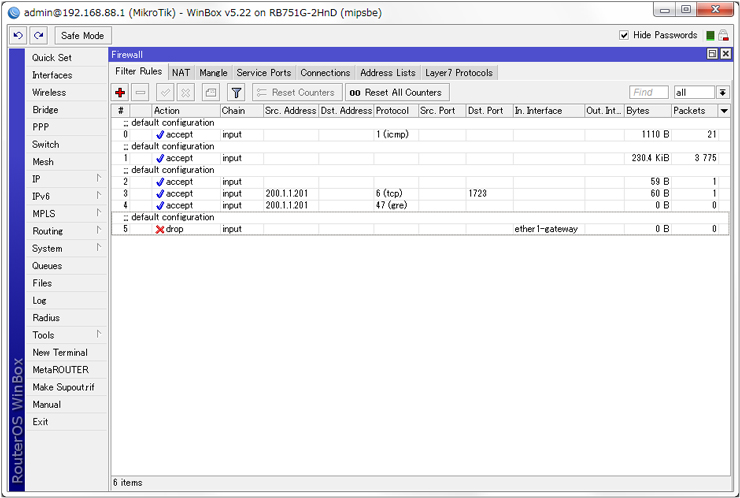 Location: [IP] – [Firewall] – [Filter Rules]