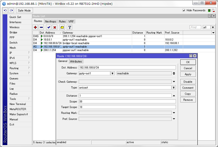 | ip route 192.168.88.0/24 gateway tunnel 2 | |