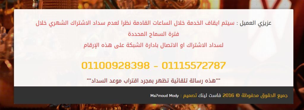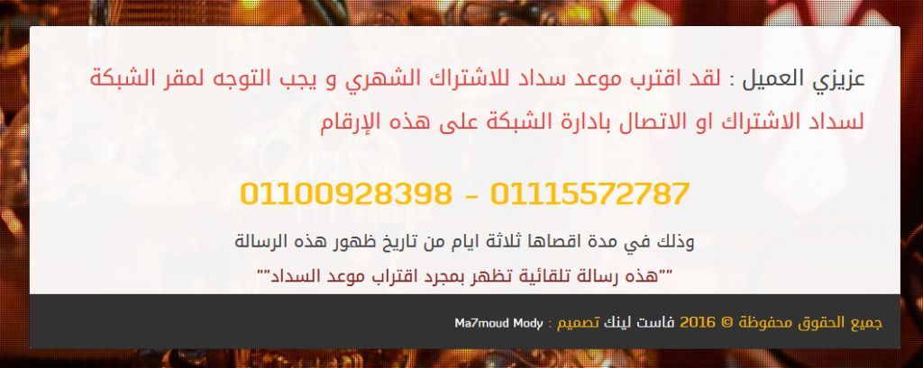 صفحة تنبية العميل بقرب انتهاء موعد اشتراكة