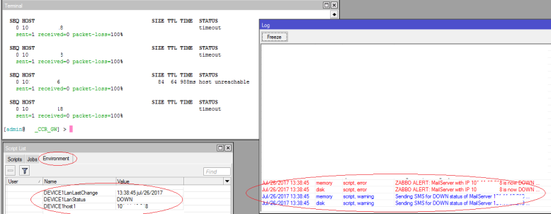 :local DOWNLOG1 "$COMPANY ALERT: $DEVNAME with IP $DEVICE1host1 is now DOWN @ $sub1 $sub2 $sub3..."