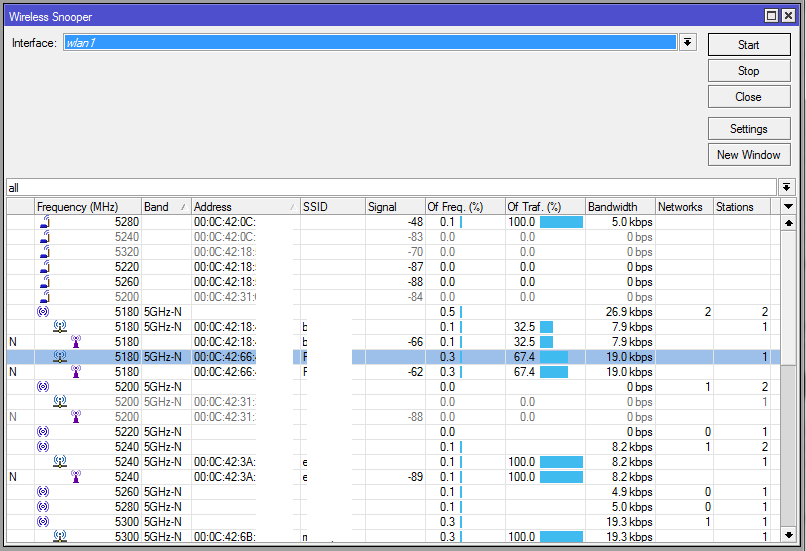 باستخدام أداة Snooper ، يمكن أن يكون معروفًا load وحركة traffic الكبيرة لكل تردد بمزيد من المعلومات التفصيلية. يستطيع Snooper عرض معلومات نقطة الوصول ورقم المحطة والعميل وإشارته وعرض النطاق الخاص به.