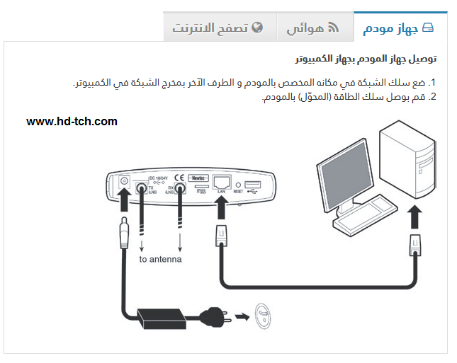 2. بعد استقبال الاشارة، اكتب الرقم 192.168.1.1 في شريط العناوين في المتصفح (Chrome or Firefox)، سيتم الدخول الى المودم لادخال الاعدادت