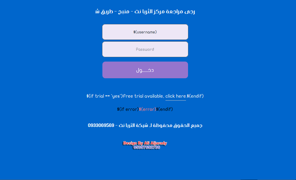 الصفحة خاصة بشبكة الثريا نت لحفظ حقوق المصمم وهي متاحة الان بين ايديكم للتجربة والتعديل عليها واضافة لها كافة معلومات الشبكة والاتصال والباقات والعروض المتاحة .