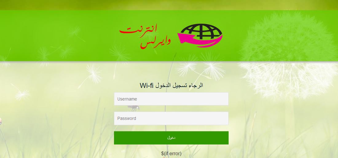 واليوم نقدم لكم صفحة وايرلس هوتسبوت لتسجيل الدخول للشبكة تمتاز بتصميم هادئ جدا وجذاب وخفيفة وصغيرة الحجم ويمكن التعديل عليها ببساطة .