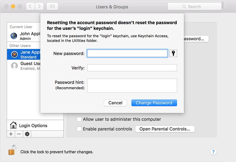 إذا اصبحت تشارك جهاز ماك الخاص بك مع شخص اخر ونسيت كلمة المرور الخاصة بهذا الشخص، فان بامكانك إعادة تعيينها لهم.