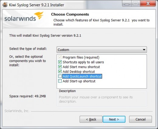 - Components المكونات – اختر اختصارات البرنامج التي ترغب في أن يقوم المثبت بتكوينها.