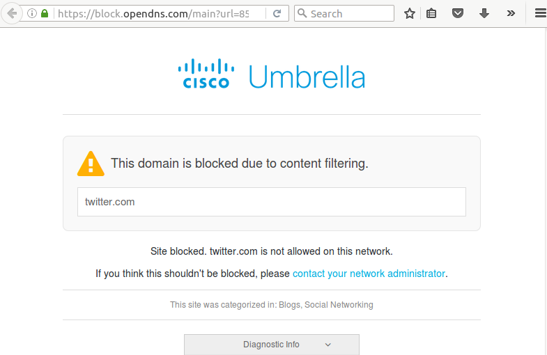 من ناحية أخرى ، إذا قمت بإعداد رسالة لموقع ويب محظور ، فسوف تبدو كما يلي: