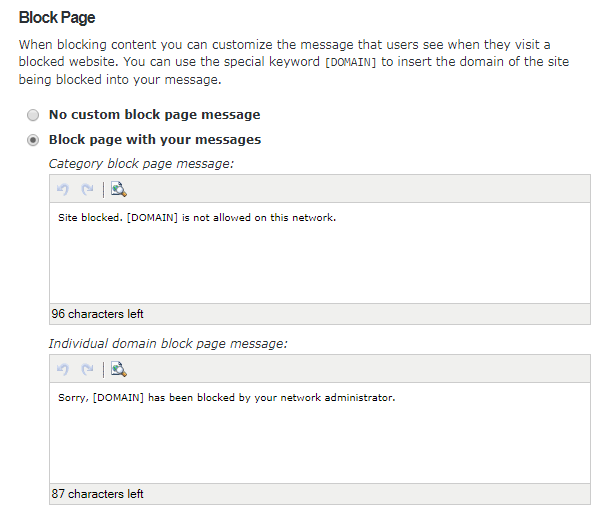 - صفحة الحظر يمكن التعديل عليها : يمكنك تعيين رسالة مخصصة ستظهر عندما يحاول المستخدم الوصول إلى موقع ويب محظور.