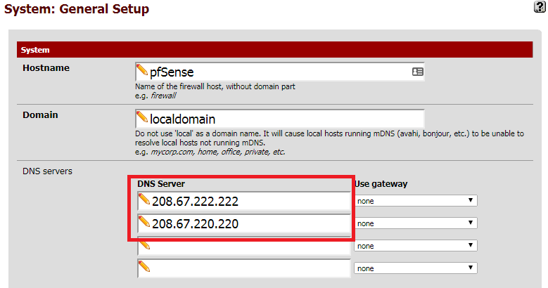 تكوين pfSense لاستخدام OpenDNS :