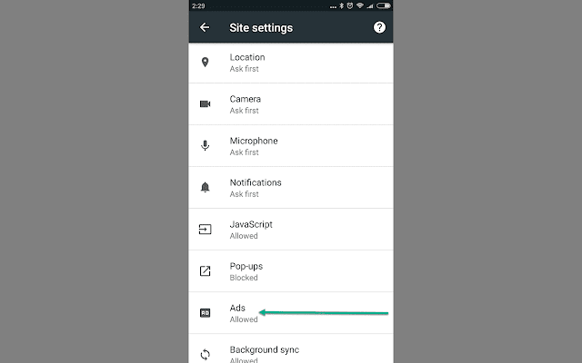 ثالثا : إضغط على ADS وقم بتفعيل تعطيل الإعلانات عبر السماح للمتصفح بمنعها .