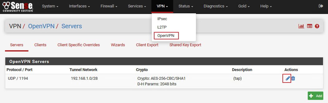 VPN | OpenVPN | Servers | Edit