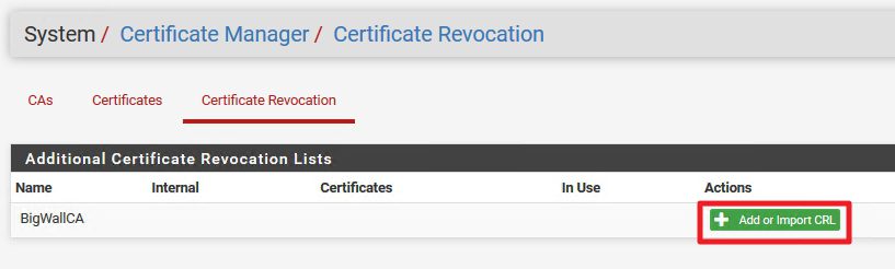 Certificate Revocation |+ Add or Import CRL
