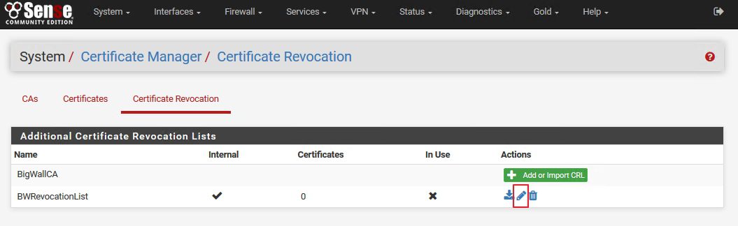 انقر مرة أخرى على Edit CRL