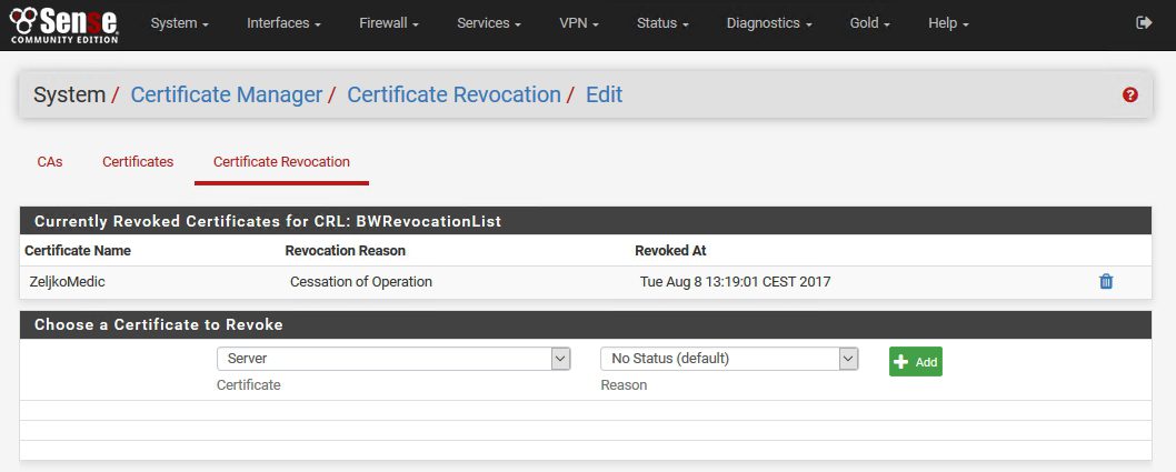 لديك pFSense OpenVPN تم تكوينه بشهادات CA وشهادات المستخدم المحلية local CA ، والآن – شخص ما يغادر الشركة ، أو تم اختراق الشهادة ، فماذا يجب أن تفعل؟