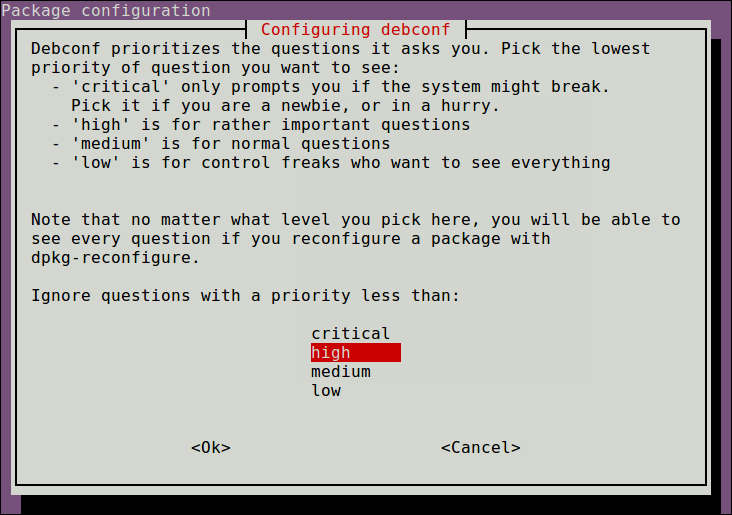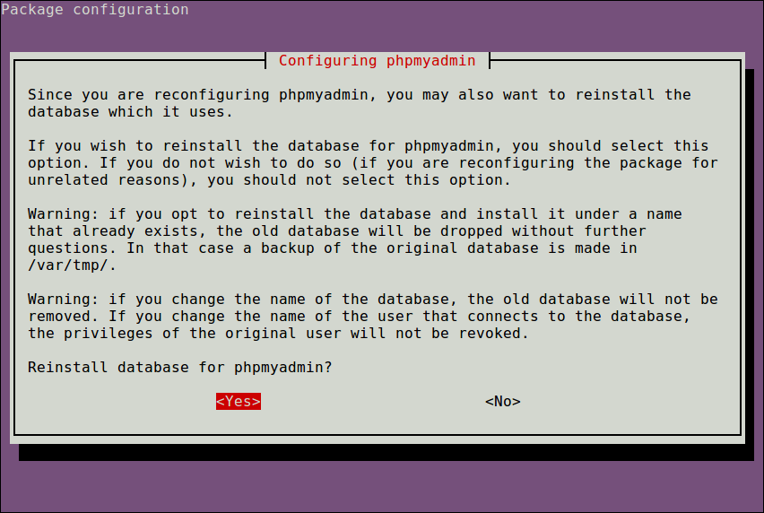 $ sudo dpkg-reconfigure -p critical phpmyadmin