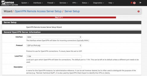إن أبسط طريقة لتكوين OpenVPN على pfSense هي استخدام معالج تكوين VPN المضمن. سيرشدك المعالج خلال عملية إنشاء مرجع مصدق ، وإصدار شهادة الخادم ، وتهيئة إعدادات خادم OpenVPN.