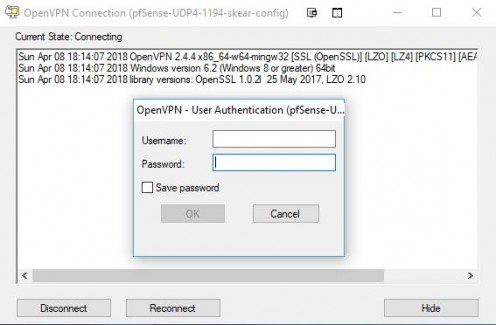 أفضل جزء في استخدام الأداة المساعدة لتصدير عميل OpenVPN هو أنه سيتم تكوين العميل تلقائيًا للاتصال بـ VPN الخاص بك. ستحتاج فقط إلى إدخال اسم المستخدم وكلمة المرور من أجل الاتصال.