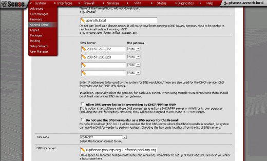 أثناء وجودك في صفحة الإعداد العامة ، تأكد من أنك قمت بإضافة خادم DNS واحد على الأقل ، بدون أن يكون DNS OpenNTP غير قادر على حل عناوين خوادم التجمع.