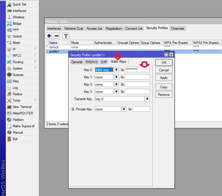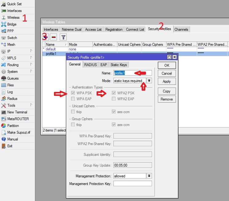 يعد إنشاء ملف تعريف الأمان في Mikrotik :