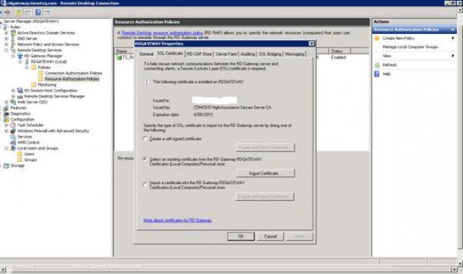 ومع ذلك ، لاستخدام RDGateway ، ستحتاج إلى تثبيت شهادة SSL صالحة. أجد أن شراء شهادة SSL هو الأفضل بدلاً من استخدام شهادة موقعة ذاتيًا ، بمعنى أنه يمكنك الحصول على شهادة SSL من Comodo و InstantSSL و Verisign ، وما إلى ذلك.
