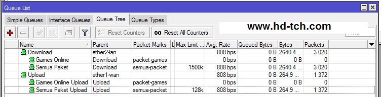 الآن ، قمنا بتعيين إعدادات الـ bandwidth في قائمة Queue Tree :