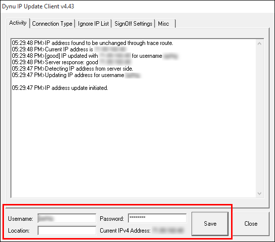 واسم المستخدم وكلمة المرور (نفس الأسماء التي تسجلها في خدمة Dynu)
